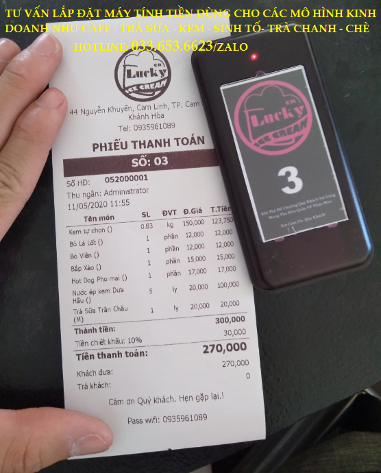 Khi khách đến quầy order món xong, thanh toán trước, nhân viên sẽ đưa cho khách 1 thẻ tương ứng với số thứ tự trên bill kèm 1 bill và nv sẽ giữ lại 1 bill.