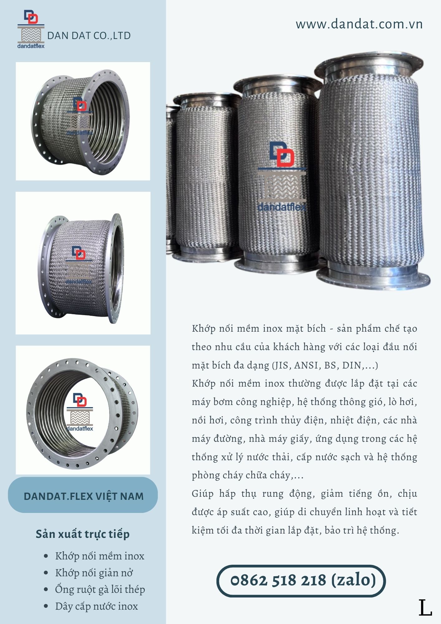 Hãy chọn Khớp nối mềm inox Dandat.Flex để cảm nhận sự khác biệt về chất lượng.